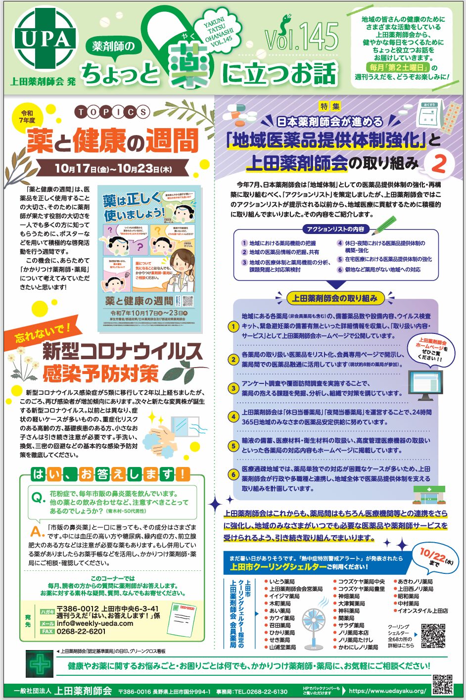 地域の皆さんの健康のためにさまざまな活動をしている上田薬剤師会から、健やかな毎日を作るためにちょっと役に立つお話をお届けしていきます。