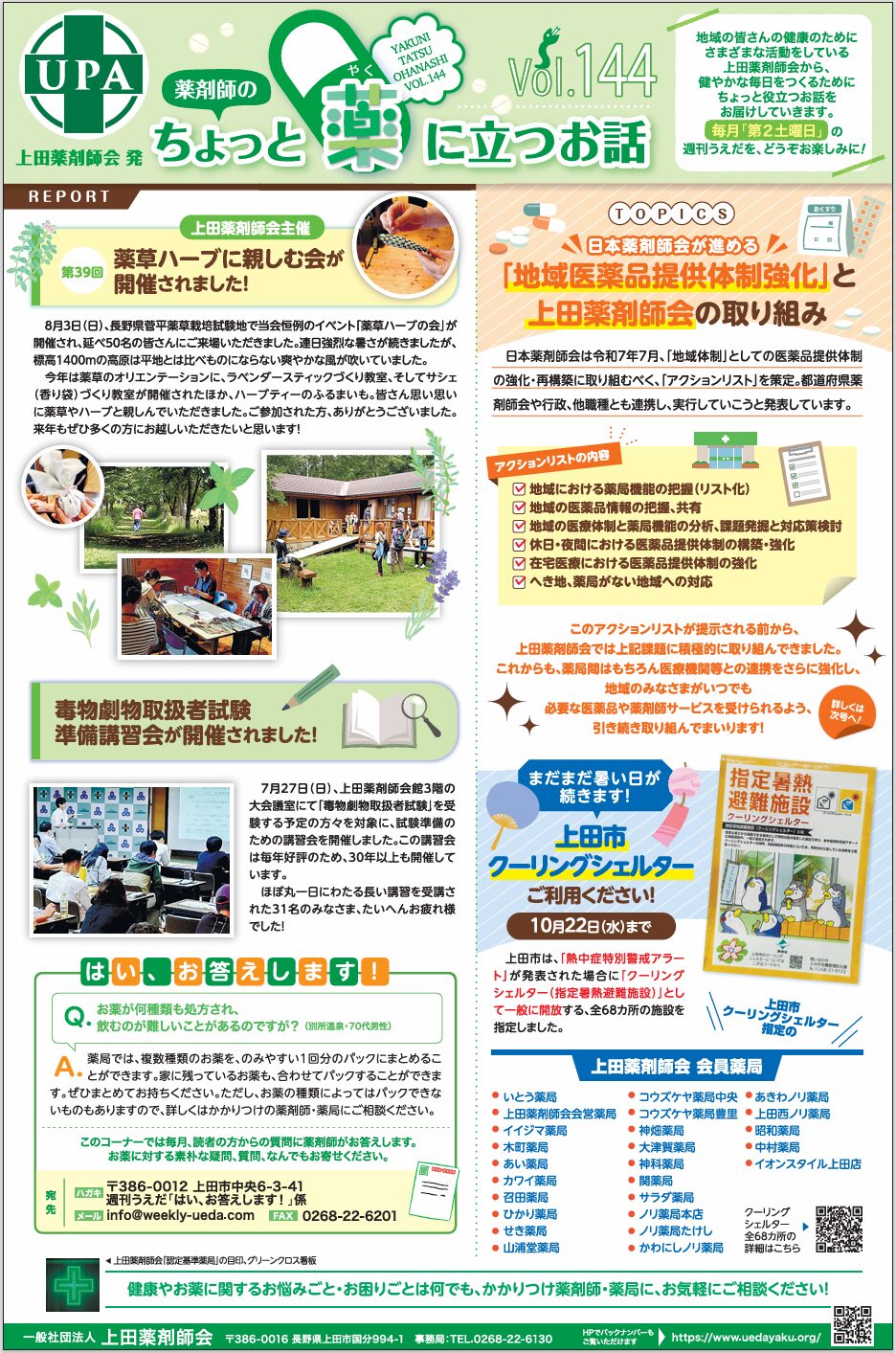 地域の皆さんの健康のためにさまざまな活動をしている上田薬剤師会から、健やかな毎日を作るためにちょっと役に立つお話をお届けしていきます。